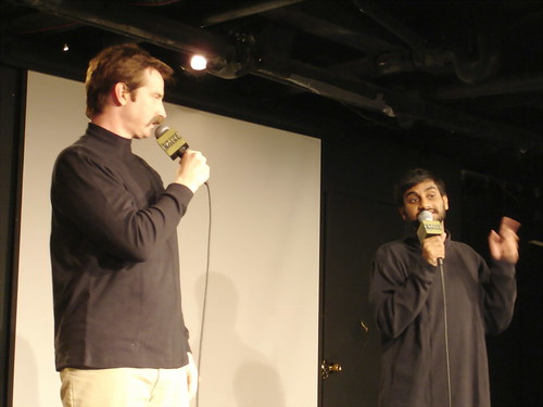 Aziz Ansari & Rob Huebel play “Thadius P. Scornburner” and “Nigel P. Radcliffe,” music editors-in-chief of Pitchforkmedia.com, at Crash Test. Their footage served to intro music videos on New York Noise, a program you should watch if you’re into indie rock (it’s like early ’80s MTV and everything MTV2 wants to be, but can’t). Watching Seth do a set is always a treat; I didn’t see him do standup again until last summer when he MC’d closing night of SketchFest NYC 2006, dressed as Wonder Woman. That shit was funnyhilarious.