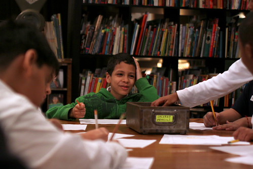 “Why should published authors be the only ones to experience the joy of seeing their work in print? At 826NYC we believe that everyone has a story to tell and we’re going to do our best to see that these great stories get published. To do this we gather a group of extremely talented kids, pair them up with an artist of the highest quality, and together they create a bound book that they take home with them.” (Storytelling & Bookmaking at 826NYC)