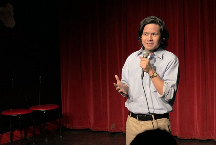 According to my blog stats, this is my 1,000th post on ImprovIsGoodforYou.com — a milestone! And speaking of milestones, the above photo is my first-ever standup comedy performance at last night’s “Cold Soda” hosted by Chris Grace. Getting to try standup was fun, the audience could not have been more supportive, and the experience was definitely one of those rare and fleeting moments that will someday compose the true story of my life. To that point, I first started this photoblog in 2006 to catch similar moments on the improv stage and make them available for everyone to see. A thousand posts later and I can honestly say I’ve never lost sight of that goal, and resultingly, I have been rewarded by regular visitors. And for that, I am truly grateful.
